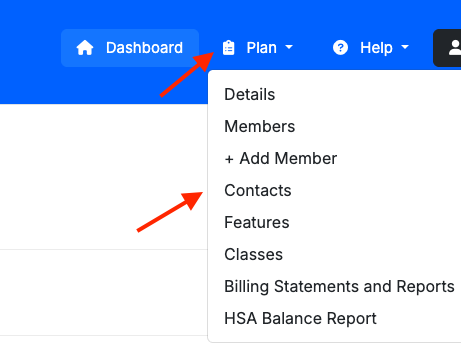 - From your dashboard, navigate to the Plan menu, and select Contacts